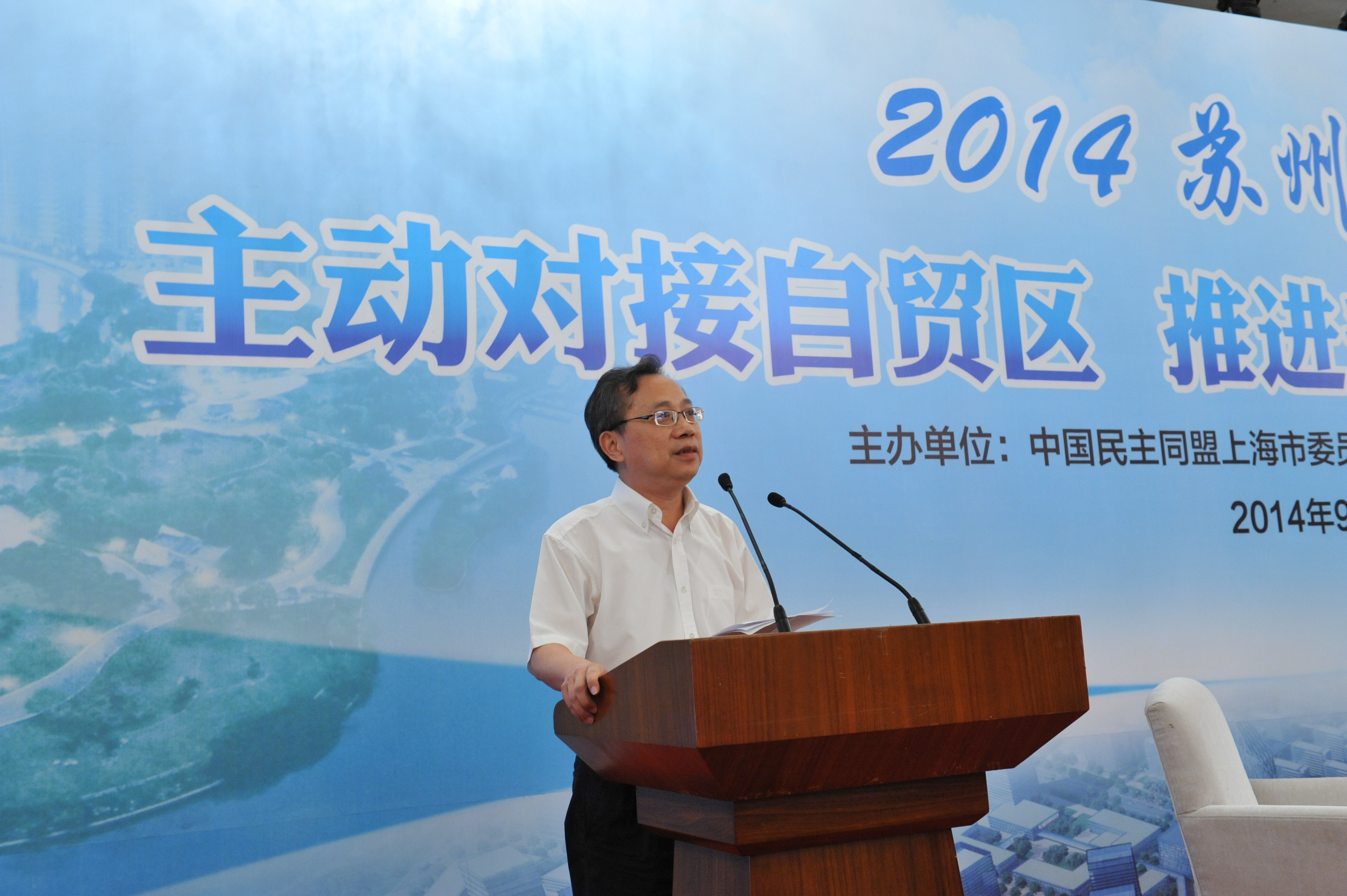非常高兴参加由民盟上海市委和政协上海市普陀区委员会共同举办的2014“苏州河论坛”。首先,对参加今天论坛的各位来宾表示热烈欢迎!同时,也衷心感谢区政协邀请上海民盟为普陀区的未来发展而共同出谋划策。